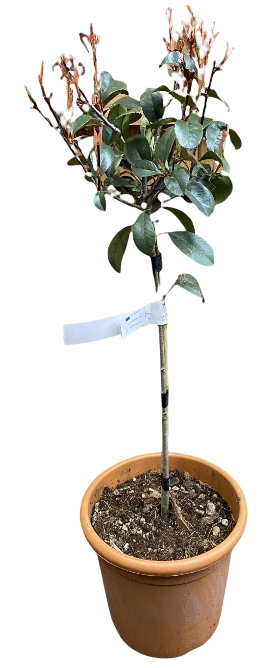 Photinia Red Robin’s name is derived from the Greek word photeinos meaning shiny, referring to its glossy showy leaves. If you are looking to make a statement in any area of landscaping, lollipop Photinia Red Robin is an excellent way to do so, not only bringing a different dimension, it adds a bright and rather unusual splash of colour. The added attraction to employing these shrubs when topiarised into an architectural shape is, being evergreen there is colour and interest over the winter months as well as throughout the summer, making it a very appealing addition to any garden, large or small.